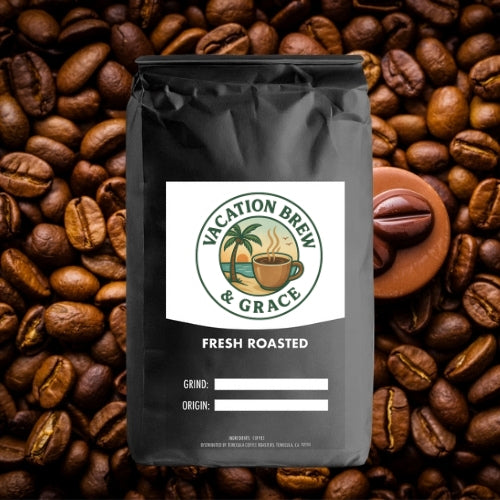 At Vacation Brew & Grace, we believe that coffee should do more than wake you up, it should help you unwind. Our roasts are made for those who crave calm mornings, intentional pauses, and meaningful moments. Blending the joy of rest with the beauty of gratitude, we brew each batch with care, love, and a little touch of grace.